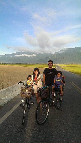 這天早上我們大約五點半起床,六點前出發騎著民宿的腳踏車去附近的伯朗大道跟大坡池,果然如在地人說的:伯朗大道在太陽出來就要趕快去,不然真的太曬了,人也會變很多,池上的腳踏車道做的很棒!金黃色的稻穗襯著陽光好美啊!!