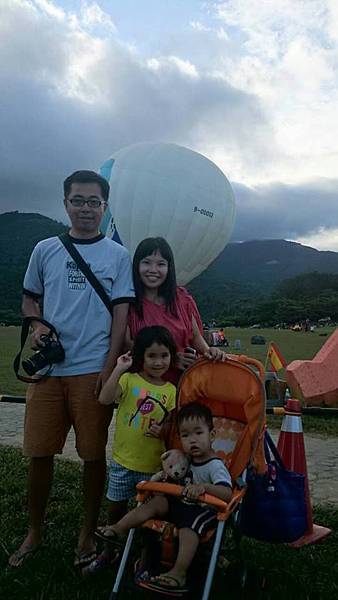 雖然有吃起司蛋糕了,肚子還是很餓~所以我們去買了卑南包子,然後大約下午五點多到達鹿野高台看熱氣球,因為今天風大所以本來四點充氣的,到我們在舞台後方,停好車才開始充氣,充氣之後又因為風大所以總指揮官決定落球,又消氣了!不能繫留,不過我們還是頗幸運,有看到好多可愛的熱氣球啊!!!